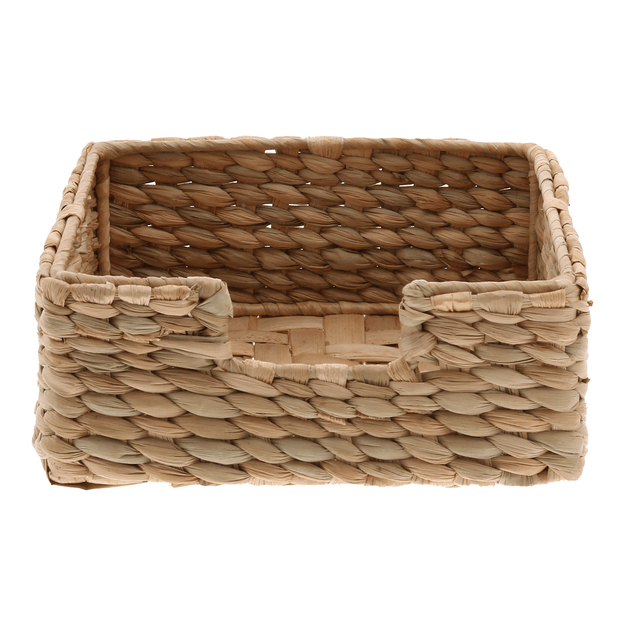 Porta-guardanapo confeccionado artesanalmente com fibra de taboa trançada e arame. Taboa é uma planta que vive em águas rasas, cujas folhas pontudas e resistentes são utilizadas em artesanato.