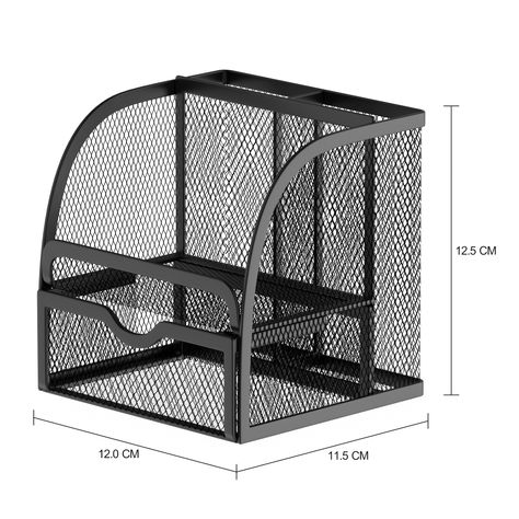 Porta-objetos em chapa, perfil e tela de aço com acabamento em pintura epóxi-pó. Possui 1 gaveta, 3 compartimentos e sapatas em E.V.A.