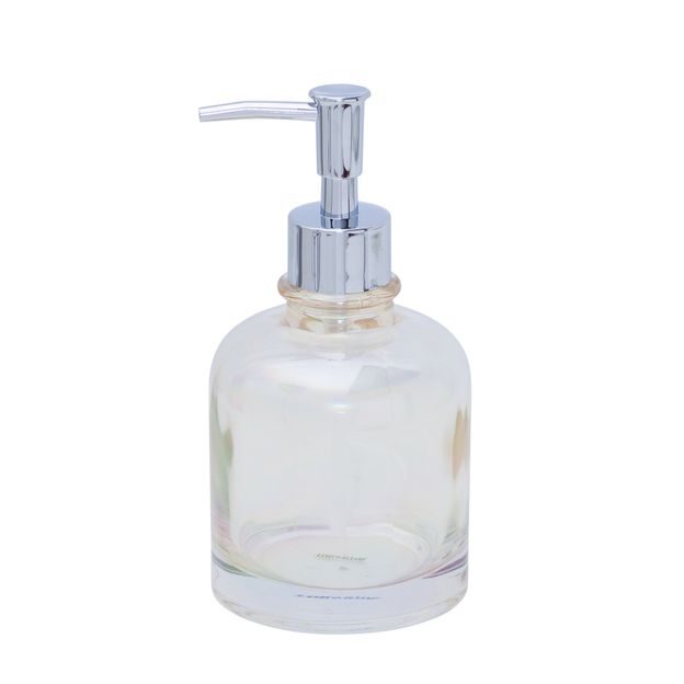 Porta-sabonete líquido em vidro com aplicação de efeito luster.