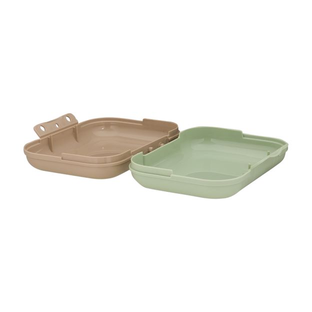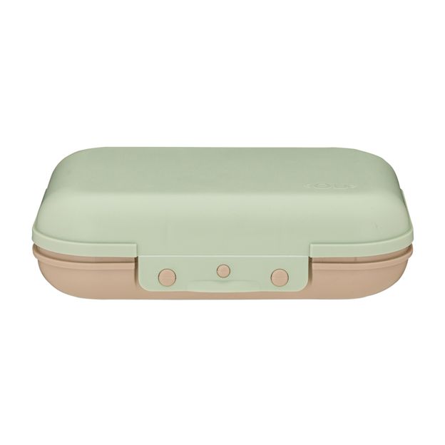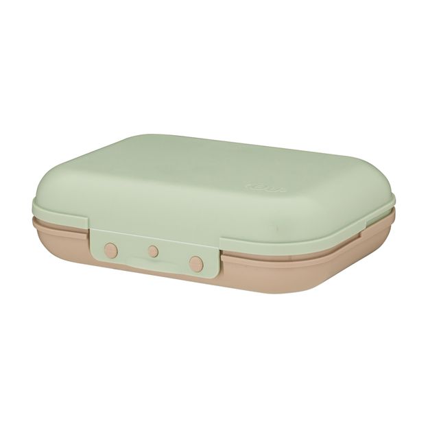 Porta-sanduíche em polipropileno. Possui tampa com fechamento hermético e trava lateral.
