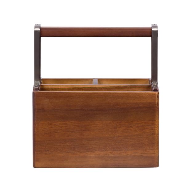 Porta-talheres, de mesa, em madeira maciça (Acácia). Possui 3 compartimentos.