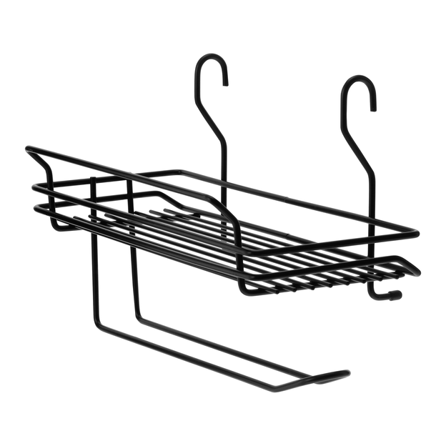 Porta-utensílios com porta-papel toalha, em barra de aço carbono, com acabamento de pintura epóxi-pó.