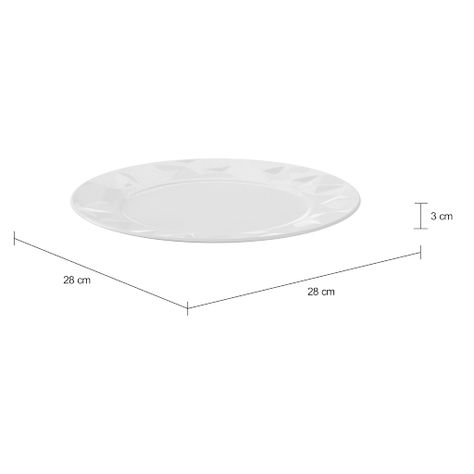 Prato raso em porcelana com detalhes em alto-relevo.