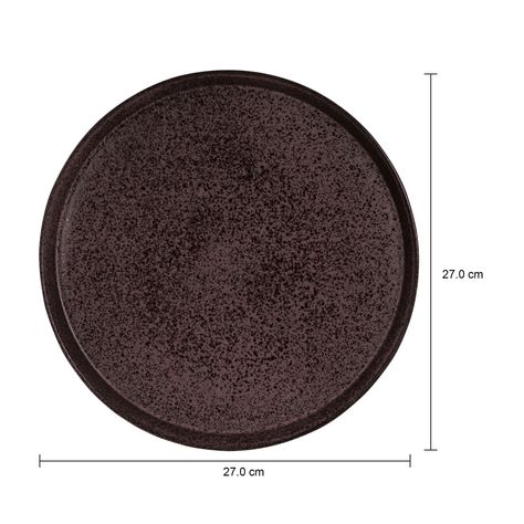 Prato raso, em cerâmica com acabamento em esmalte reagente.