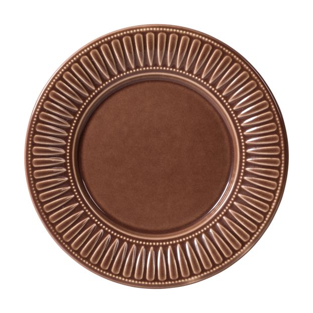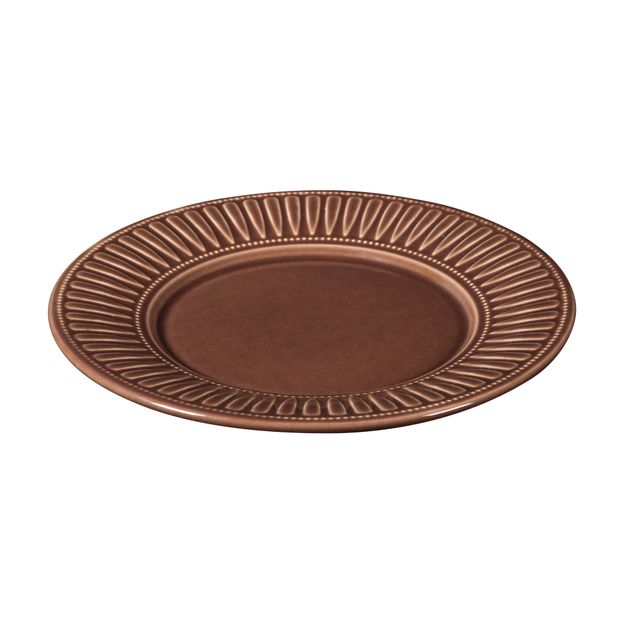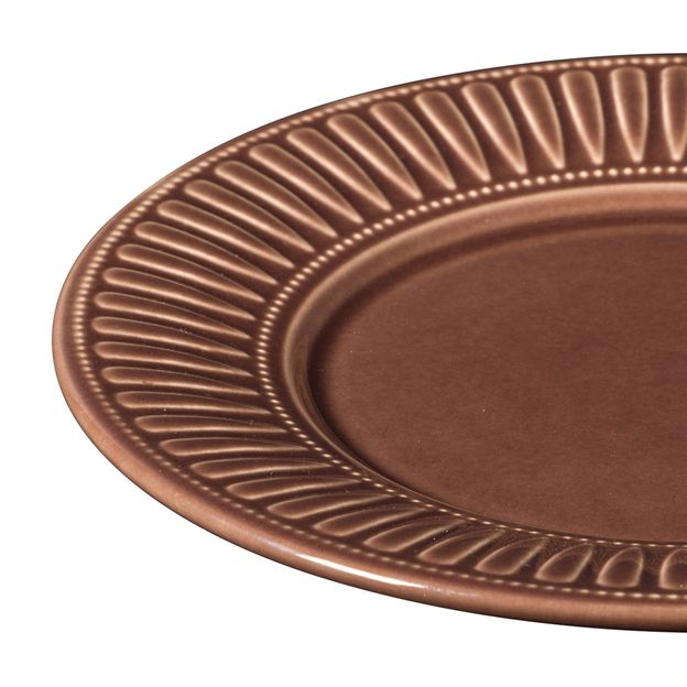 Prato para sobremesa em cerâmica faiança. Possui detalhe em alto-relevo.