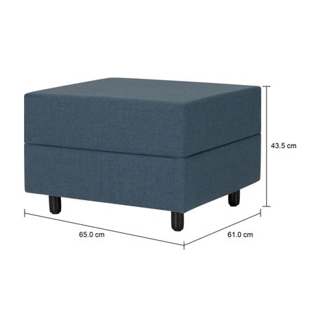Puff/baú com estrutura em madeira maciça (Eucalipto) e percintas elásticas e emborrachadas, revestidas com espuma de poliuretano (D26), manta acrílica e tecido 100% polipropileno. Possui pés maciços tingidos.