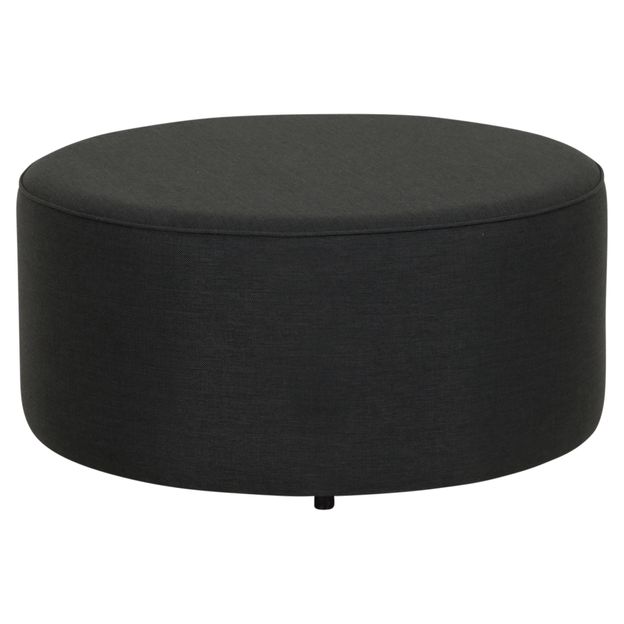 Puff com estrutura em madeira maciça de reflorestamento (Pinus Elliottii) e chapa de MDF, revestidos com espuma de poliuretano (D26/assento e D23/laterais) e tecido 73% polipropileno/27% poliéster. Possui alça para manuseio e pés plásticos.