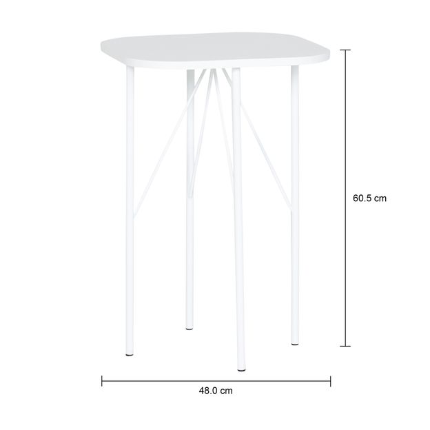 Mesa lateral com estrutura em tubo de aço com acabamento em pintura epóxi-pó e tampo em MDF (Medium Density Fiberboard) de 15 mm com pintura poliuretânica. Possui sapatas plásticas.