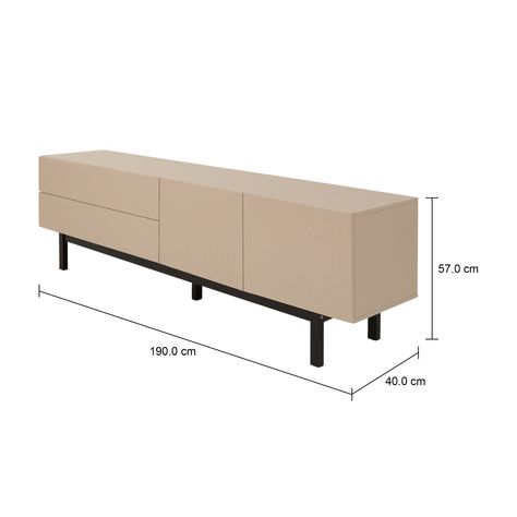 Dispensa o uso de puxadores. Possui sapatas plásticas reguláveis. Para uso com TVs de até 75' e 28kg; desde que sejam respeitadas as medidas do móvel. Carga máxima suportável: 40kg/tampo, 10kg/nicho e 5kg/gaveta; distribuídos uniformemente.