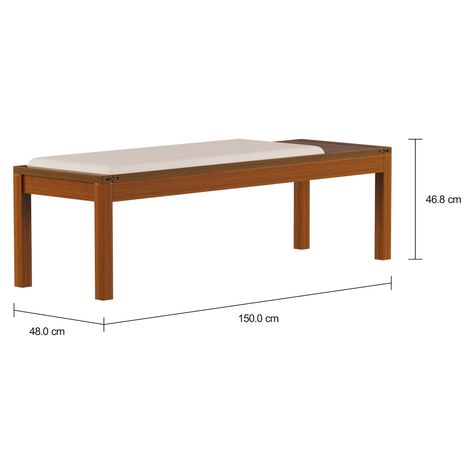 Variedades de madeiras: Jequitibá, Eucalipto e Tauari. Pode haver variação de tonalidades e veios. Carga máxima suportável: 150kg; distribuídos uniformemente. Acompanha cera para manutenção. Instruções para utilização no rótulo.