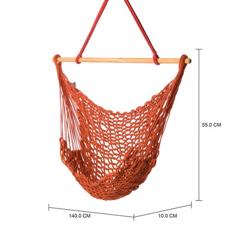 Rede/cadeira, confeccionada artesanalmente em tecido 80% algodão/ 20% PET reciclado. Possui alça e barra em madeira.
