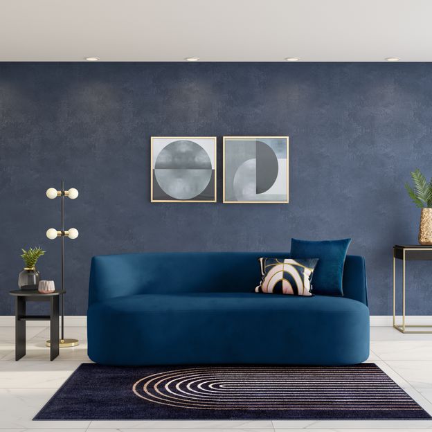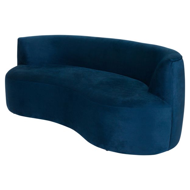 Sofá com estrutura em madeira maciça de reflorestamento (Eucalipto) e OSB (Oriented Strand Board), percintas elásticas revestidas com espuma (D30) e tecido 100% poliéster, tipo veludo. Possui pés plásticos.