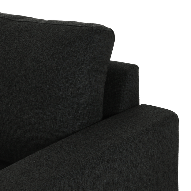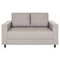 Sofá com estrutura em madeira maciça (Eucalipto) e percintas elásticas e emborrachadas, revestidas com espuma de poliuretano (D26/assento, D26/encosto e D26/braços), manta acrílica e tecido 100% polipropileno. Possui pés maciços tingidos.