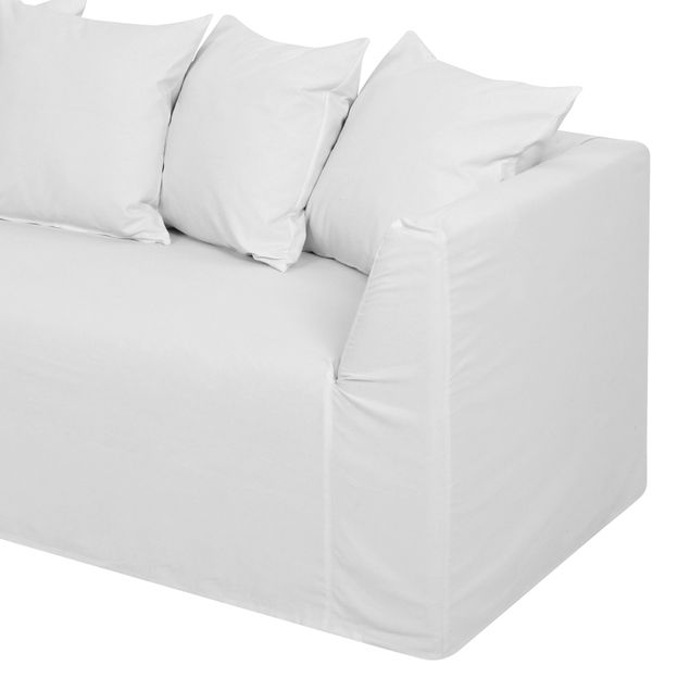 Conjunto de capas para sofá, em tecido 100% algodão. Composta por: 1 capa para sofá 3 lugares e 5 para almofadas do encosto (55cm x 55cm) com fechamento por zíper. Para uso com sofá da mesma linha (vendido separadamente).