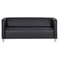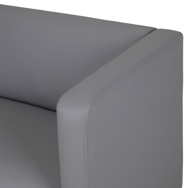 Sofá com estrutura em madeira maciça de reflorestamento (Pinus Elliottii) e percinta elástica com espuma de poliuretano (D26/assento/braço e D23/encosto), feltro e revestimento sintético em PVC. Possui pés em tubo de alumínio polido.