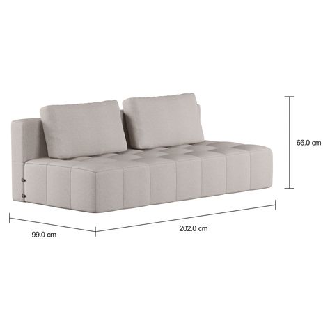 Acompanha 2 almofadas para o encosto com enchimento em fibra siliconizada. Carga máxima suportável: 300kg; distribuídos uniformemente. Área útil como cama: 2,02 m x 1,40 m.Altura até o assento: 35 cm.