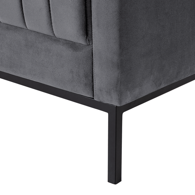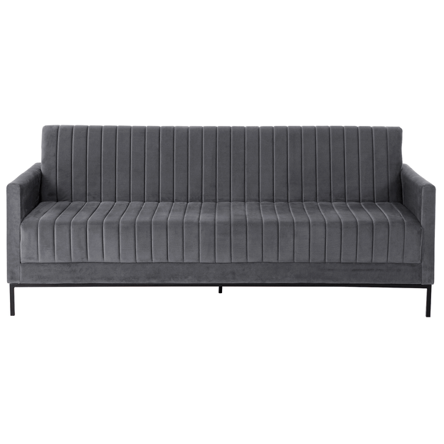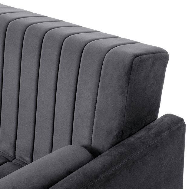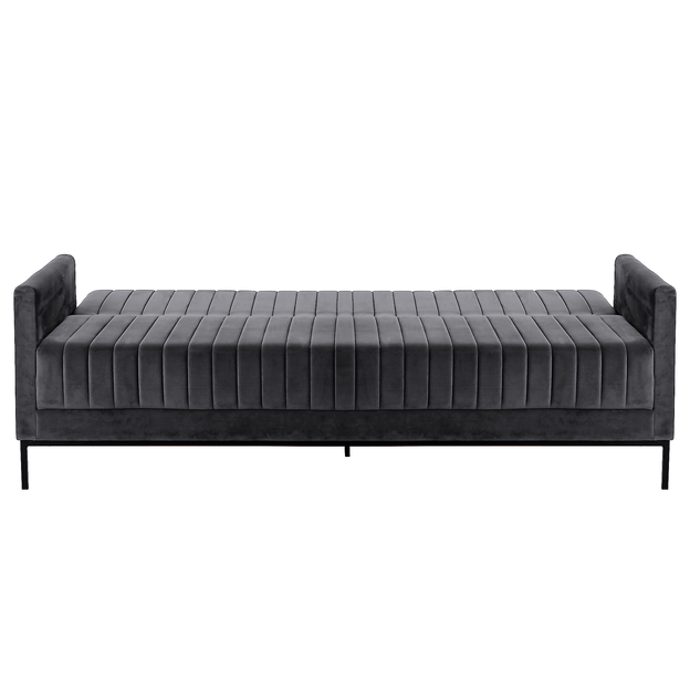 Sofá-cama com estrutura em madeira maciça de reflorestamento (Eucalipto), molas, percintas elásticas italianas, espuma (D26/assento e D23/encosto), manta acrílica e tecido 100% poliéster, tipo veludo. Possui encosto reclinável em 3 posições.
