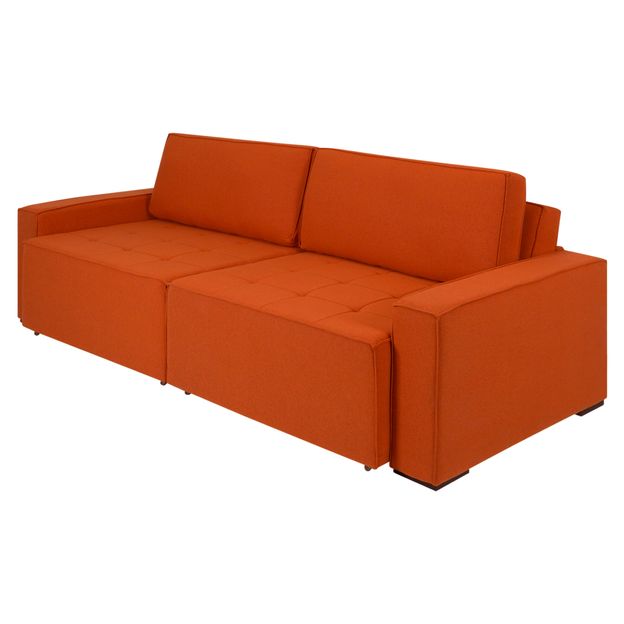 Sofá com estrutura em madeira maciça (Eucalipto), percintas elásticas, molas bonnel, espuma de poliuretano (HR28 de alta resiliência), manta acrílica e tecido 87% algodão/13% poliéster. Possui assento extensível/retrátil.