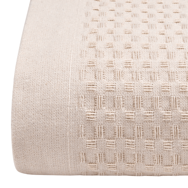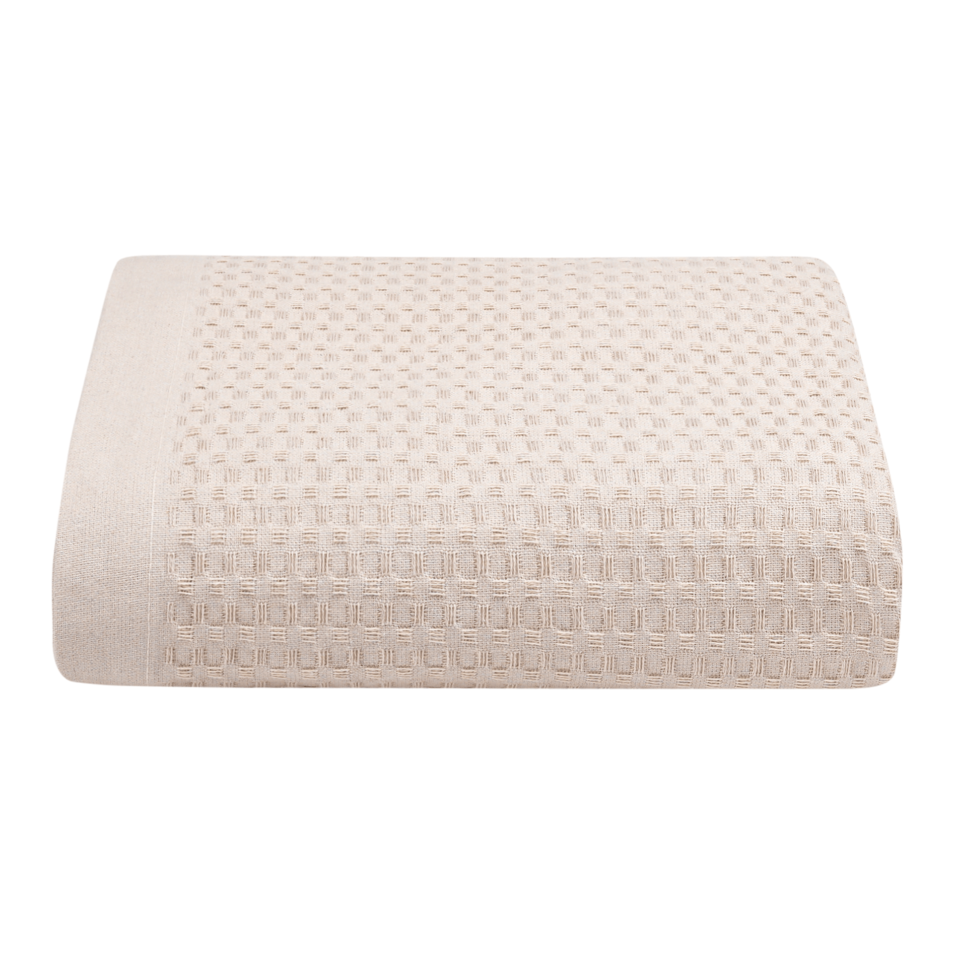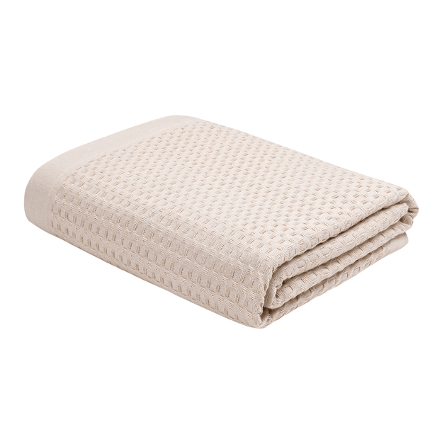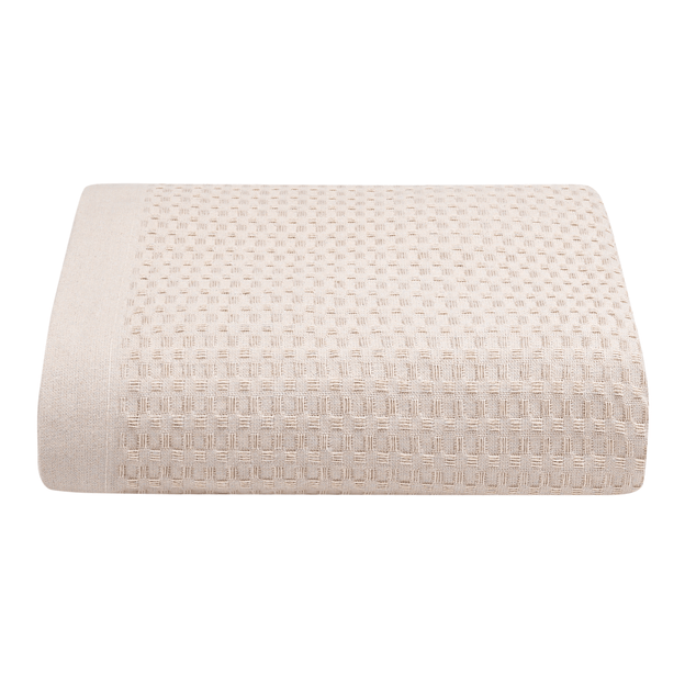 Colcha, para cama de solteiro em fios reciclados 80% algodão/ 20% poliéster. Possui detalhes em relevo.