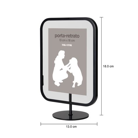 Porta-retrato, para mesa, com moldura em metal com acabamento em pintura. Possui visor em vidro incolor. Para uso com fotos, horizontais, 13 cm x 18 cm.