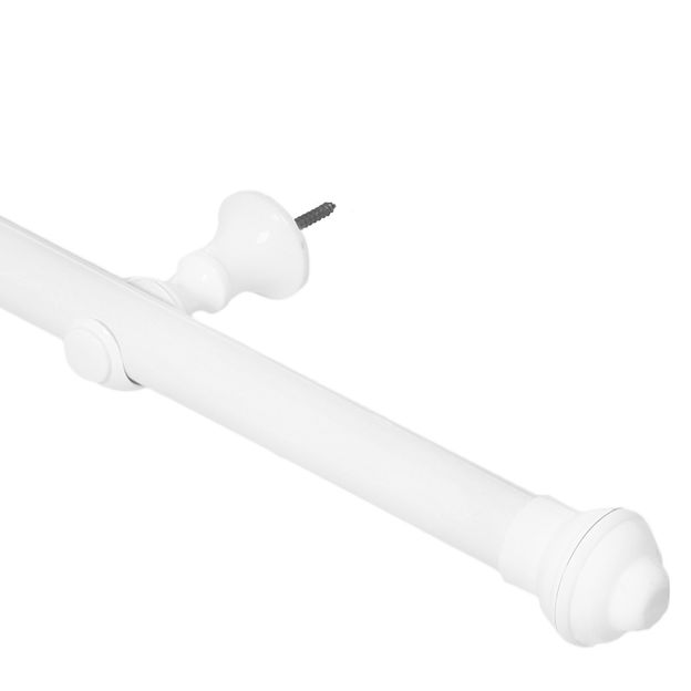 Suporte para cortina em alumínio com acabamento pintado. Possui ponteira e suporte em poliestireno. Acompanha bucha para fixação de 8mm.