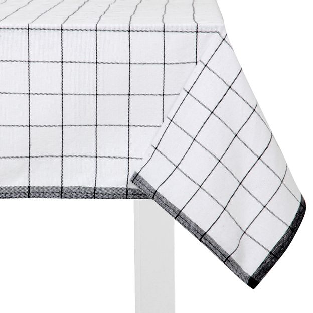 Toalha de mesa em tecido 70% algodão/25% poliéster/5% viscose.