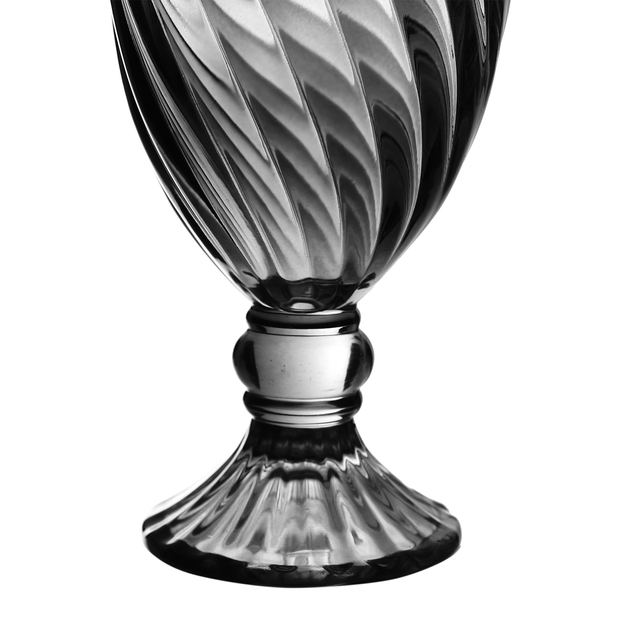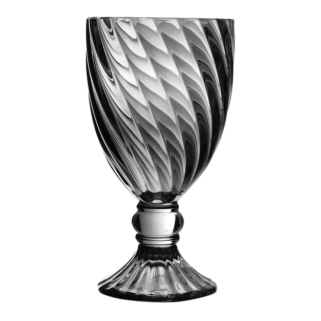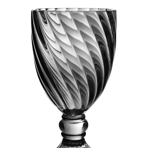 Taça para água/vinho, em vidro com detalhes em alto-relevo.