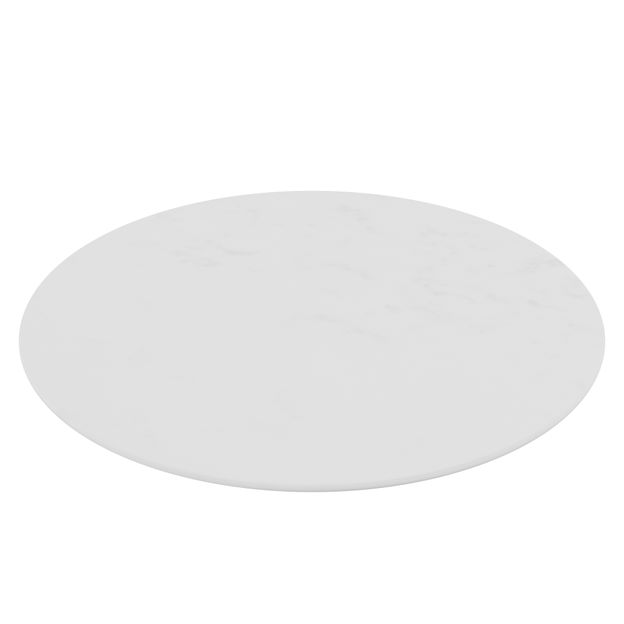 Tampo de mesa, em mármore nacional (Branco Espírito Santo) selecionado, com acabamento em hidro-óleo; agente repelente impermeabilizante. Para uso com base de mesa lateral da mesma linha (vendida separadamente).