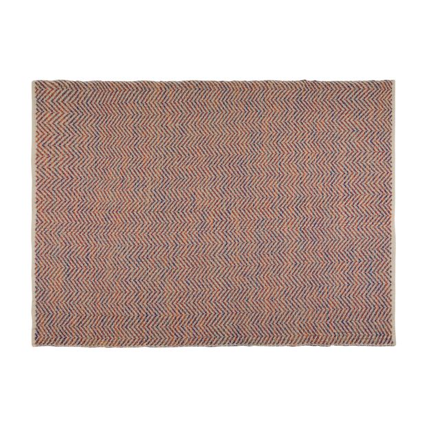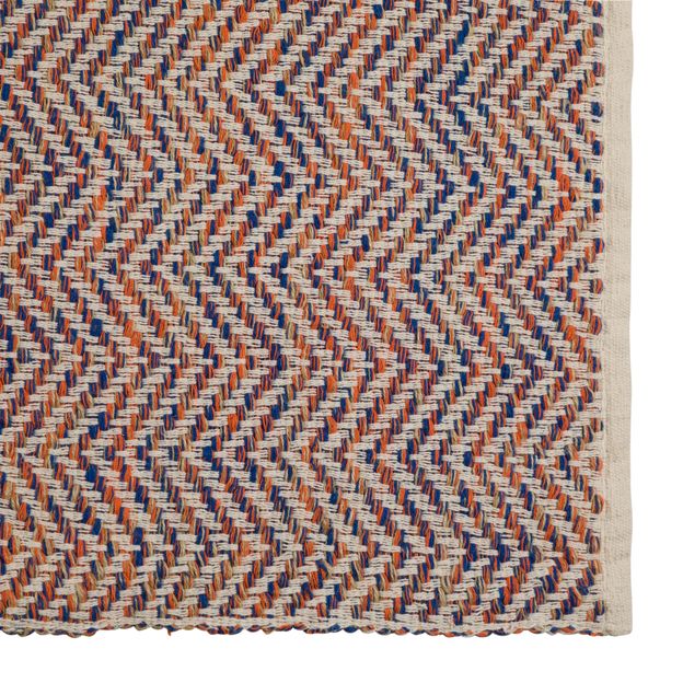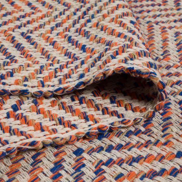 Tapete, com franjas, confeccionado em tear manual 80% algodão/ 20% juta.