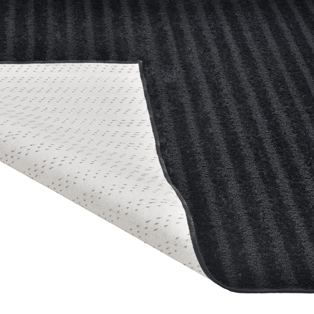 Tapete, com superfície em fios 100% poliéster e base antiderrapante 100% polipropileno.