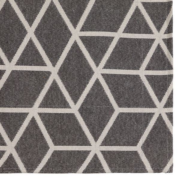 Tapete, confeccionado em tecido (tipo jacquard) 72% algodão/ 28% poliéster com aplicação de estampa. Possui base emborrachada.
