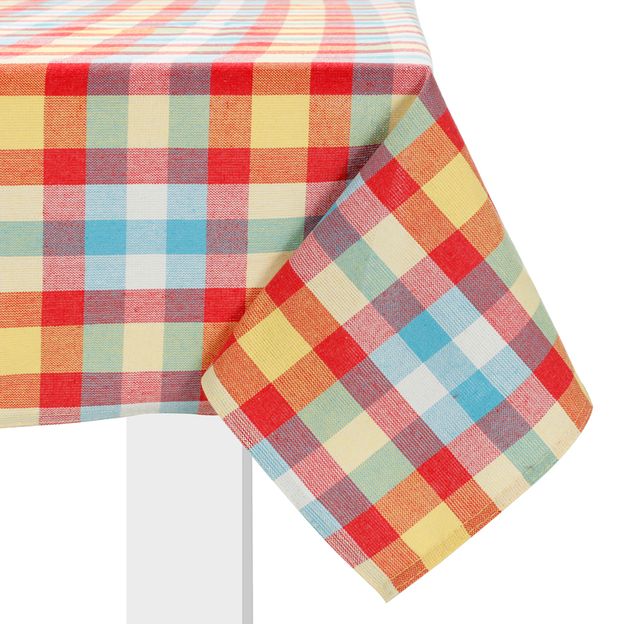 Toalha de mesa em tecido 70% algodão/ 25% poliéster/ 5% viscose. Produto sujeito a encolhimento de no máximo 3%.