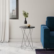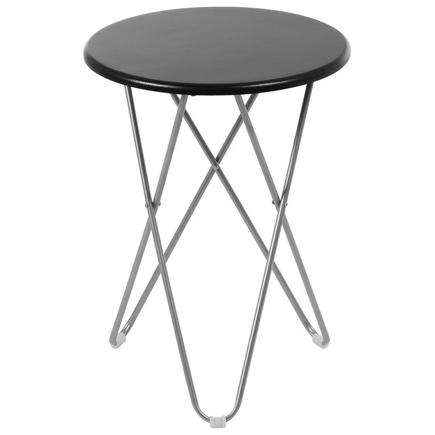 Mesa lateral, com estrutura em tubo de aço com acabamento em pintura epóxi-pó e tampo em MDF (Medium Density Fiberboard) pintado. Possui sapatas plásticas.