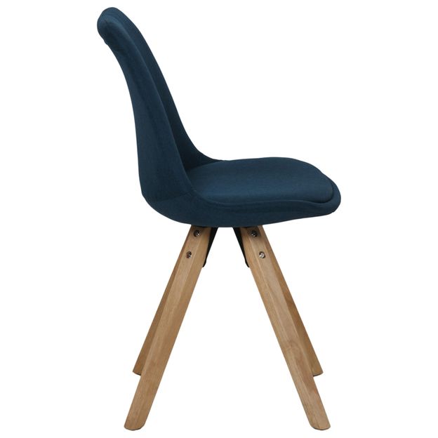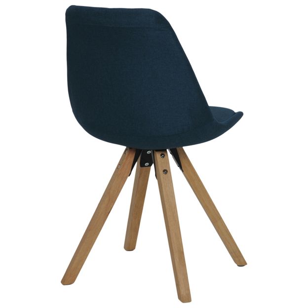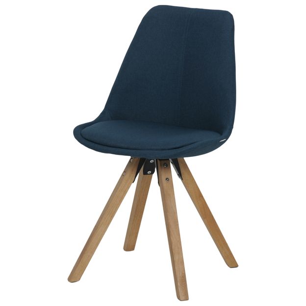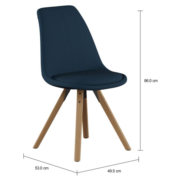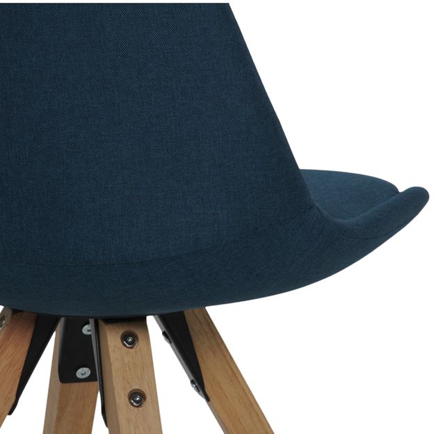 Cadeira com base em madeira maciça (Faia) tingida com aplicação de verniz e assento/encosto em polipropileno com espuma (D24/assento e D20/encosto) revestida com tecido 100% poliéster. Possui almofada acoplada.