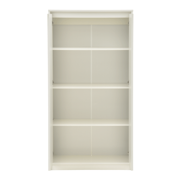 Armário alto em MDP (Medium Density Particleboard) de 15 mm, revestido com laminado melamínico de baixa pressão e bordas em PVC. Possui 2 portas, 4 nichos, sendo 2 prateleiras reguláveis e sapatas plásticas.
