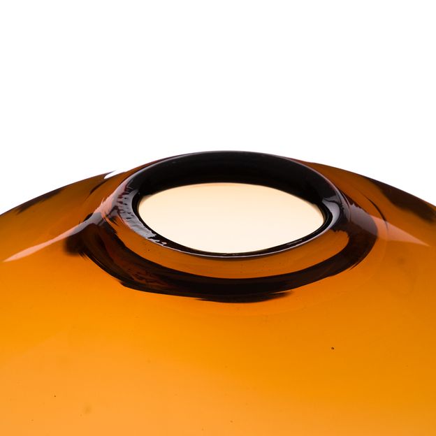 Shape abaulado e vidro âmbar em um gradiente digno de destaque na composição.Em sua infinidade de materiais, formas e cores, os vasos trazem para o décor um toque especial de cuidado e preocupação. Com a oportunidade de trazer plantas e flores para dentro de casa, sejam elas naturais ou artificiais, as possibilidade de renovação podem ser diversificadas ao longo das estações do ano.