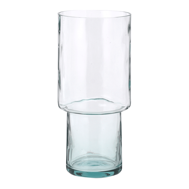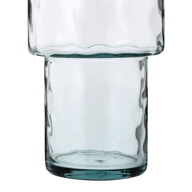 Vaso, confeccionado artesanalmente em vidro reciclado. Possui detalhes em baixo-relevo.