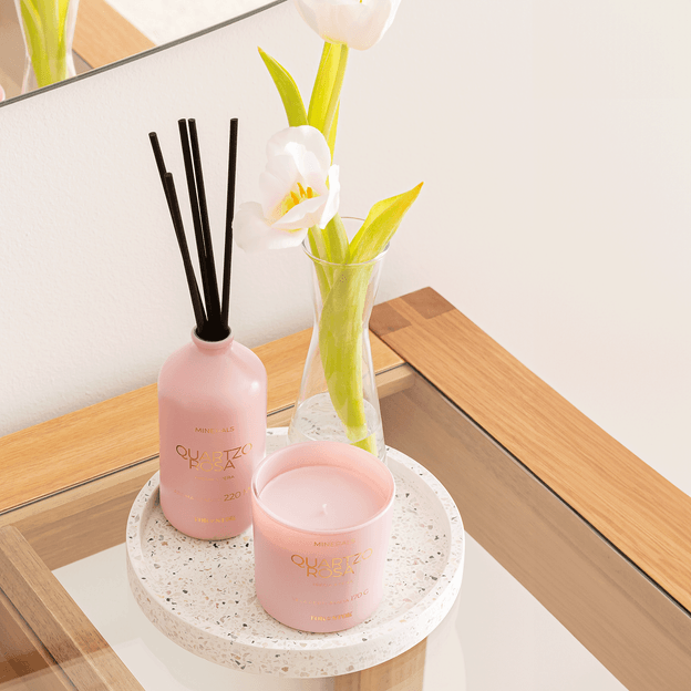 Sofisticada e exclusiva, a coleção de aromas Minerals é aposta perfeita para manter a casa sempre perfumada e proporcionar aquela sensação de aconchego superespecial.Com propostas para diferentes espaços, a linha conta com vela, aromatizador e sabonete líquido. Sua proposta visual traz as cores da cartela da tendência Urbano Contemporâneo da Tok Stok - Quartzo Rosa, Garnet, Rodonita e Konkret - aliadas a estampas inspiradas nas pedras que dão nome à esta coleção.Escolha sua fragrância preferida para refletir personalidade para o seu décor também de forma olfativa e afetiva. Aposte!