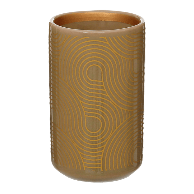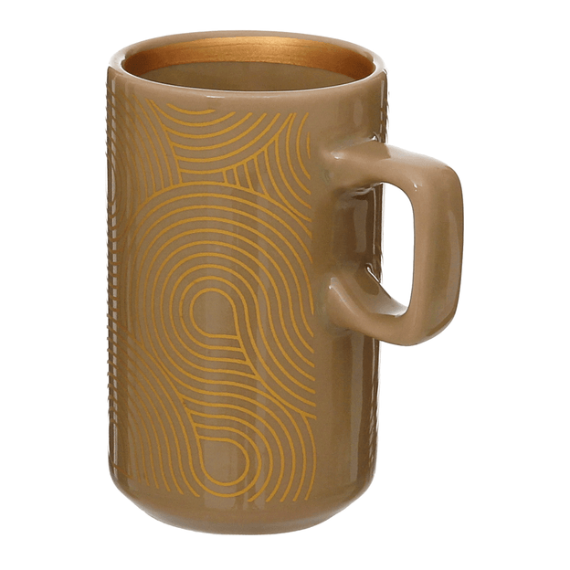 Caneca, em porcelana esmaltada com detalhe em baixo-relevo.